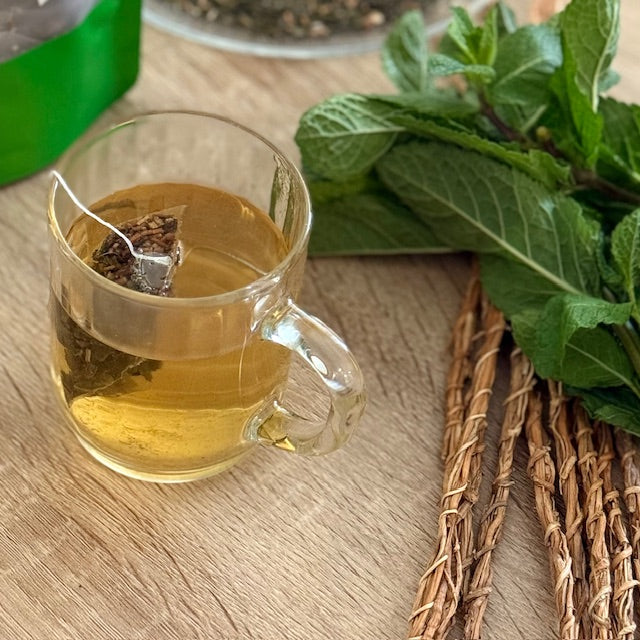 Laissez vous surprendre par la vivacité de Khama'Fresh, une infusion pensée pour apporter fraîcheur et énergie. Inspirée des plantes africaines aux vertus tonifiantes, cette recette combine note boisée et mentholées pour une expérience rafraîchissante dés la première gorgée.
